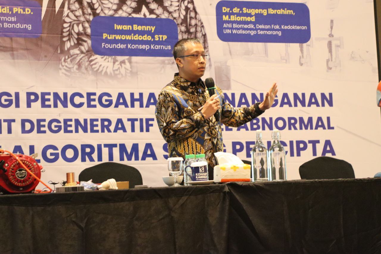Seminar ini mengusung tema, “Strategi Pencegahan & Penanganan Penyakit Degeneratif dan Sel Abnormal Sesuai Algoritma Sang Pencipta”. Seperti biasanya, acara ini diisi oleh Founder Konsep Karnus, Iwan Benny Purwowidodo, STP.